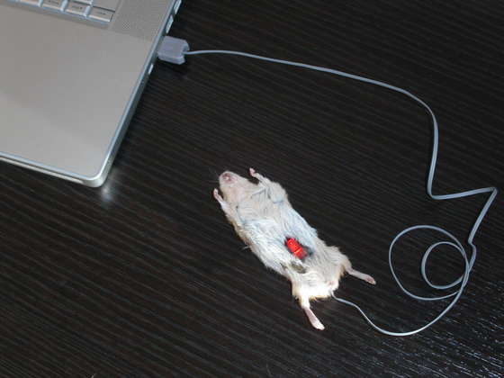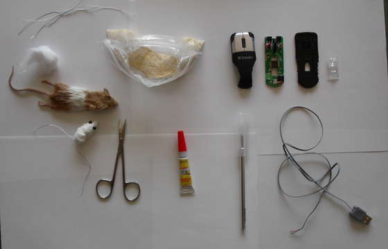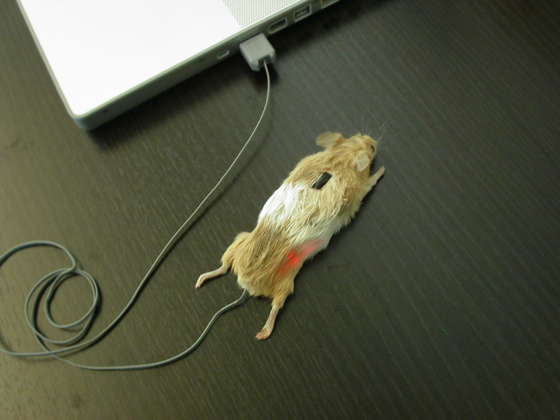 На сайте www.instructables.com он разместил инструкцию, по превращению дохлой мыши в компьютерную. Трупик мыши он приобрел в магазине, где продают корм для домашних питомцев, в частности для рептилий. Соотвествующую мышку для лаптопа он купил в обычном компьютерном магазине.
